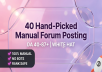Are you looking for Best quality FORUM Posting SEO Backlinks Wanna outrank your competitors.I will manually Post on Dofollow HighQuality High Authority different Forums w...