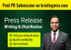 Want to skyrocket your brand visibility, improve SEO, and get featured across major media platformsYoure in the right placeI will professionally submit your press releas...